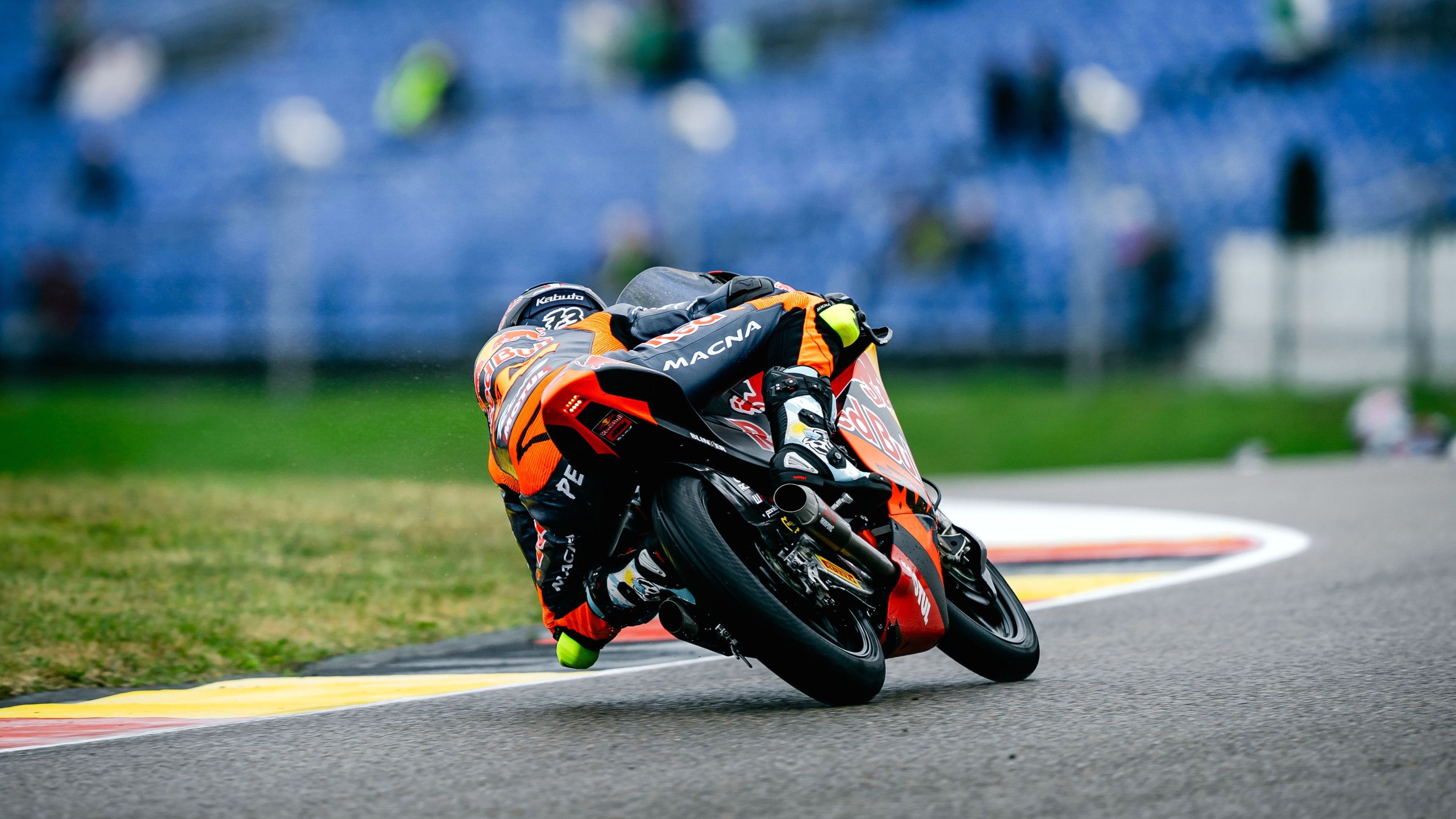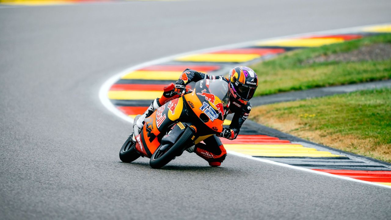 Track conditions did not make things easy at all for our rookie Valentin Perrone who continued his Sachsenring discovery in the wet on Saturday. The young Argentinian struggled to find his way through the 13 corners on Friday, and the difficulty rose by one level on Saturday under the rain. After Free Practice 2 spent in the wet, Valentin took the 20th time in preparation for the afternoon qualifying. Braving the rain in Q1, Valentin started with an early 1’36.745 which powered him to the provisional top 4. Feeling right with the pace and the feeling in the wet, the young Argentinian further progressed to a 1’36.613 to the provisional top, and then a final effort saw him clock a 1’35.675. With a late improvement of Cormac Buchanan to first, Valentin finished 2nd and joined teammate Roulstone in Q2. All riders launched for the fight for the pole, but unfortunately, an incident at Turn 8 forced race direction to show the red flag, with the air-fence needing to be re-deployed. Once everything was back in order, Q2 could commence. That delay obliged most riders to do one sole run, and with less than 3 minutes to go, Valentin clocked in his fastest lap with a 1’36.006. He gave his best to try improving, but that was it for the day. He finished with the 15th time. As tomorrow’s race is expected to be a try, the young Red Bull KTM Tech3 rider will focus on making a good start from row 5, to try to catch the front group, and hopefully, go from there!